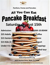 Come beat the heat & enjoy all you can eat pancakes! Take a self guided tour after breakfast to see how our amazing cats get their day started. Breakfast includes fruit, variety of toppings, yogurt, juice & coffee